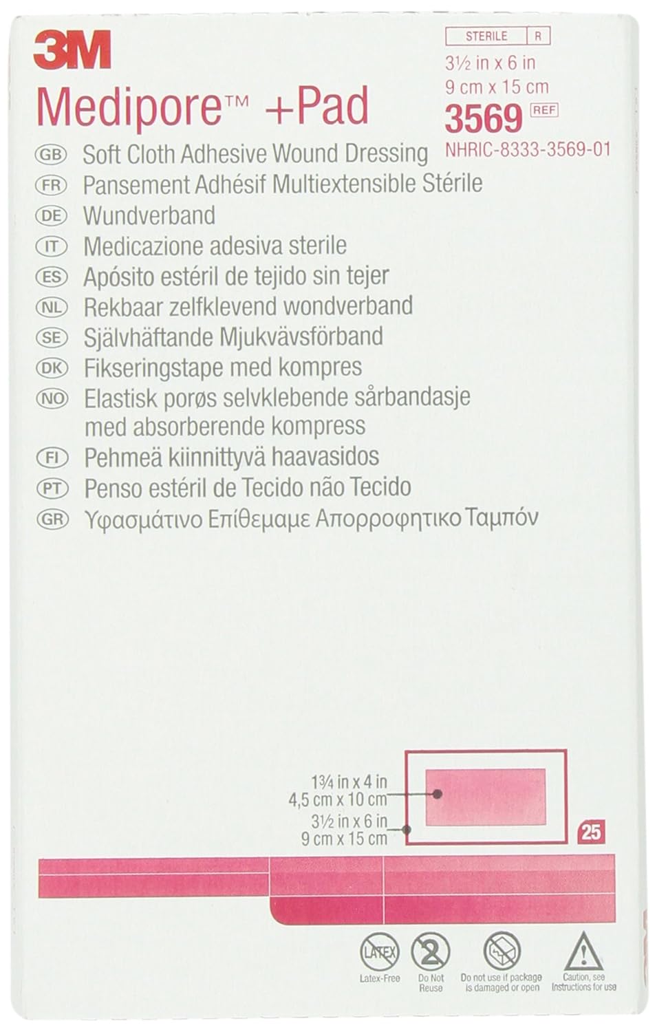 3M™ Medipore™ +Pad Soft Cloth Adhesive Wound Dressing, 3569, Dressing – 3-1/2 in x 6 in, Pad – 1-3/4 in x 4 in